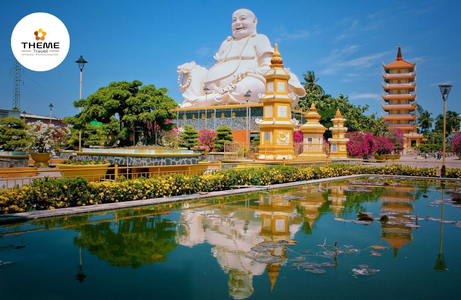 07h45: TOUR TIỀN GIANG - BẾN TRE – AN GIANG - CẦN THƠ. Quý khách dùng điểm tâm sáng tại nhà hàng Trung lương, sau đó đoàn di chuyển đến chùa Vĩnh Tràng - Một trong những ngôi chùa nổi tiếng tại Tiền Giang.
